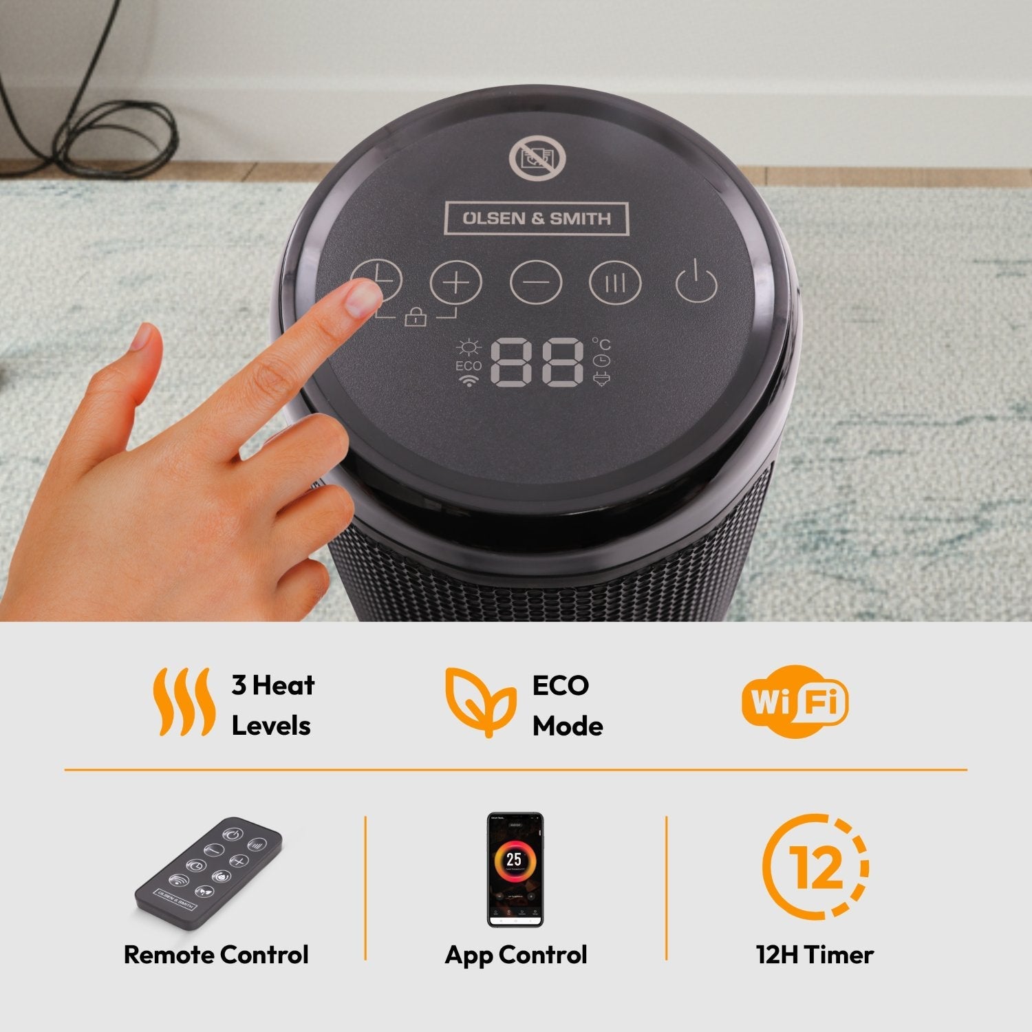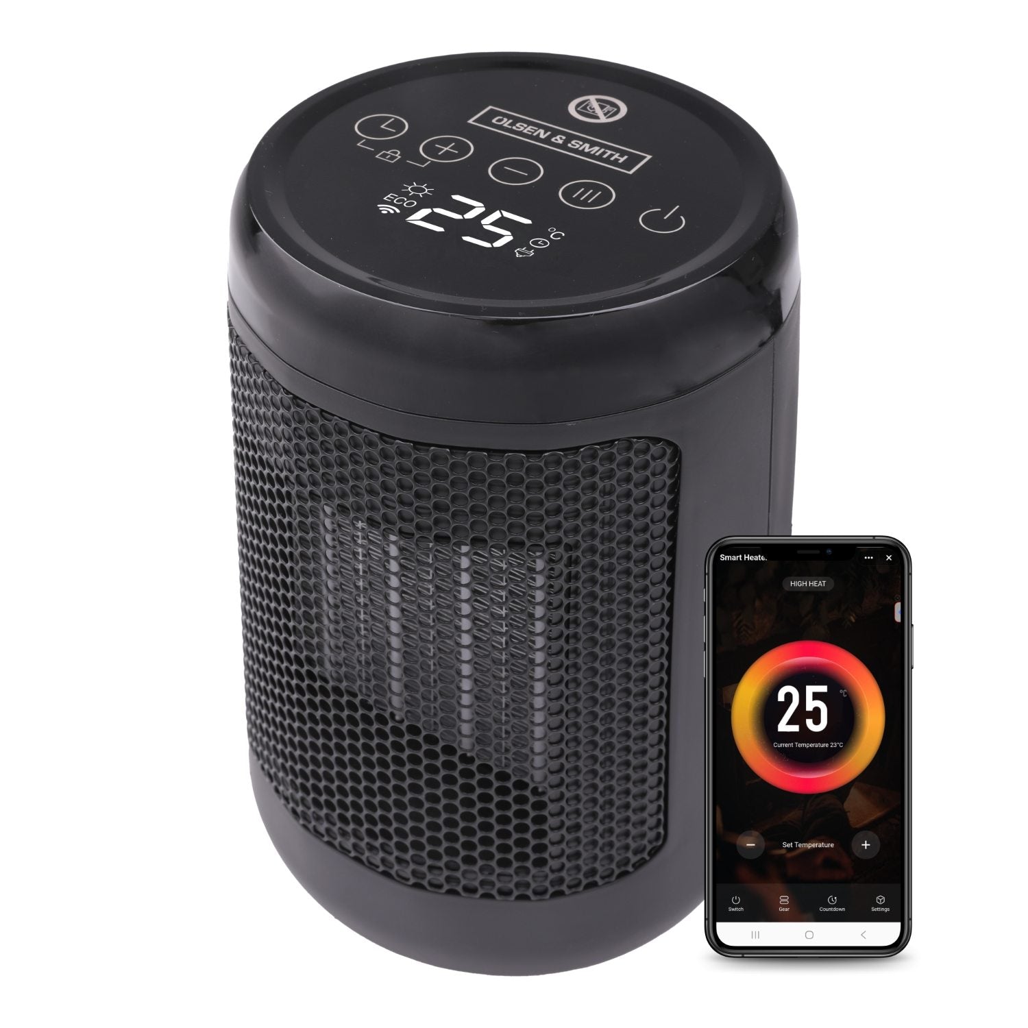 Olsen & Smith 1800W Smart Ceramic Space Heater – Portable Electric Tabletop Heater with WiFi App Control, Thermostat, ECO Mode, Timer & Safety Features (Indoor Use)