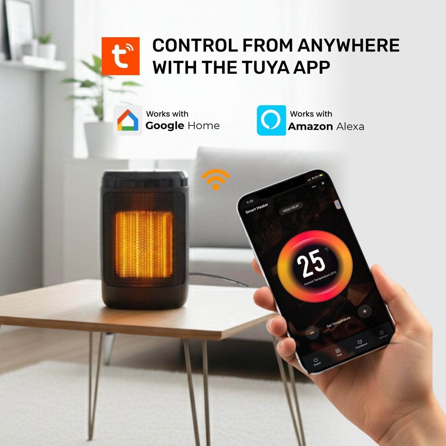 - TOUCH PANEL + SMART APP CONTROL: Control your heater your way using the built-in touch controls or remotely via the Tuya Smart App over WiFi. Adjust temperature, power levels and timer settings from anywhere. Also supports Alexa & Google Home for hands-free voice control.