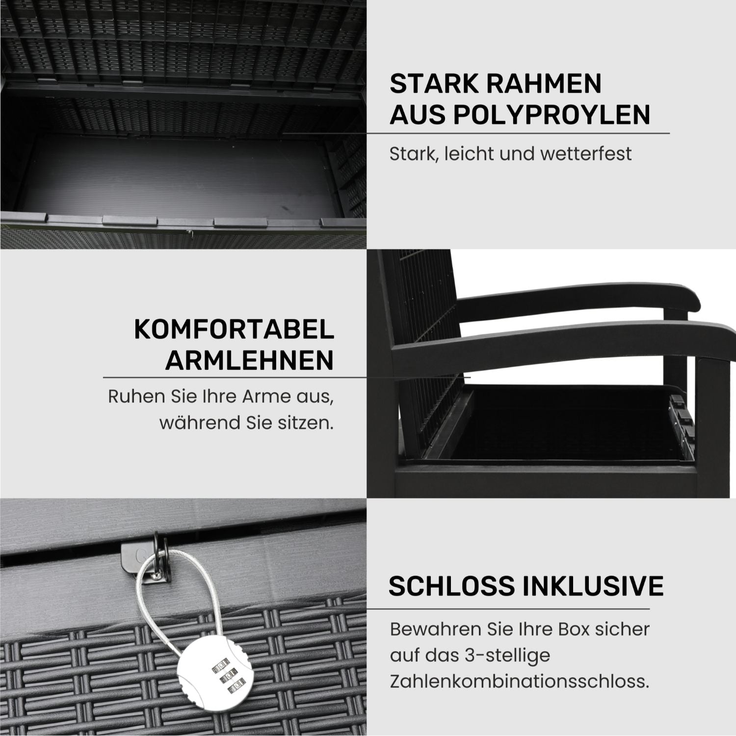 - Tragbares & sicheres Design – Leicht, aber stabil – die Bank lässt sich problemlos an den gewünschten Platz im Garten oder auf dem Balkon verschieben. Inklusive 3-stelligem Kombinationsschloss für zusätzliche Sicherheit, damit Ihre Sachen vor Diebstahl und unbefugtem Zugriff geschützt sind.
