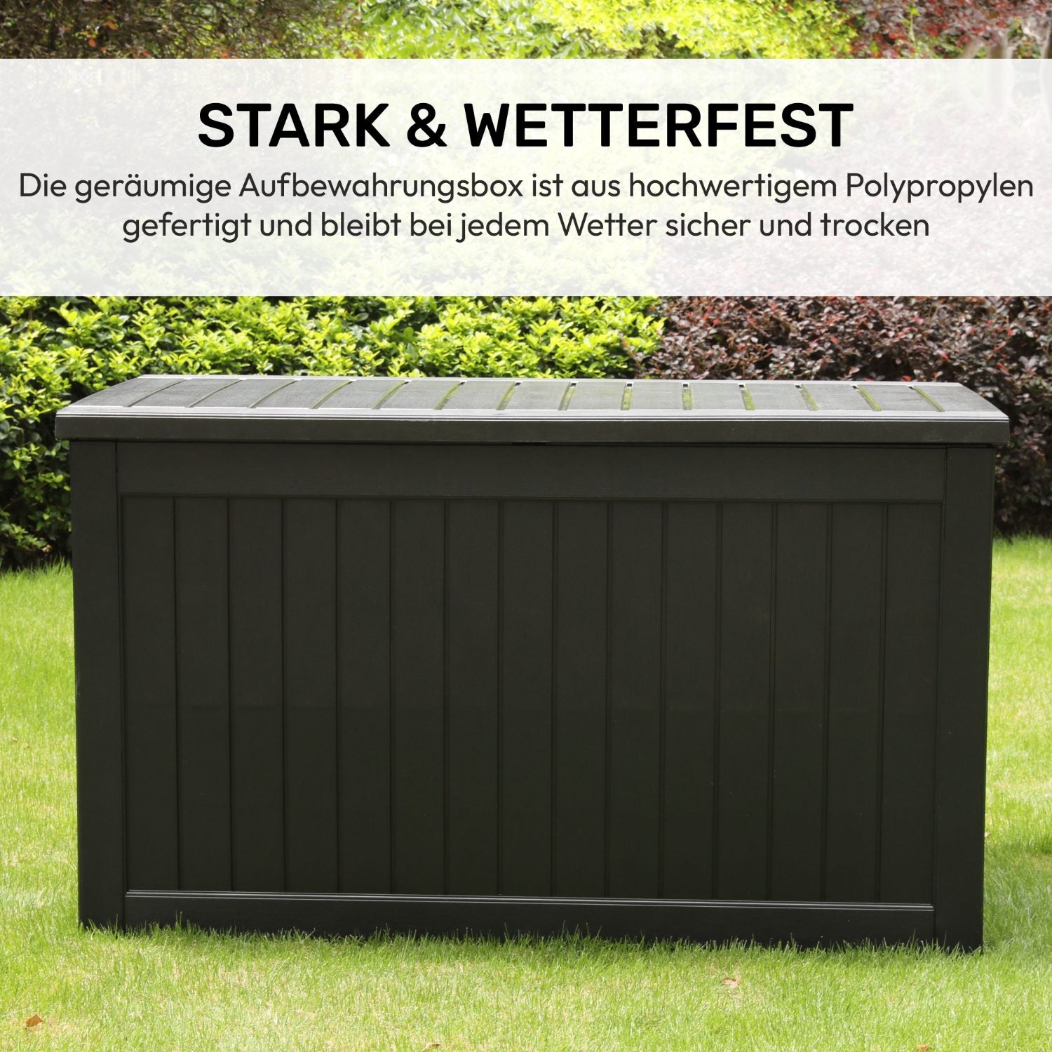 Maße: Außen: 146 x 81 x 85 cm (B x T x H) | Innen: 135 x 73 x 78 cm (B x T x H) | Gewicht: 25kg. - Langlebige & Wetterbeständige Konstruktion – Hergestellt aus hochwertigem Polypropylen-Kunststoff, ist diese robuste Aufbewahrungstruhe so konzipiert, dass sie Regen, Schnee und starker Sonneneinstrahlung standhält. Die stabile Bauweise schützt Ihre Gegenstände zuverlässig vor Witterungseinflüssen und macht sie ideal für den ganzjährigen Einsatz.